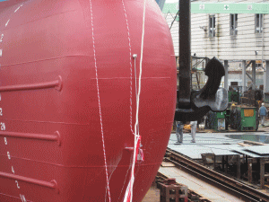 建造中において極太バルバスへアンカー巻き揚げが干渉する不具合も