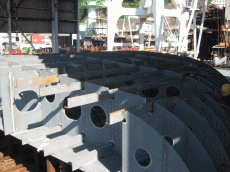 船台上における本船(Sno.575)一連作業 F の様子。(9/25〜)