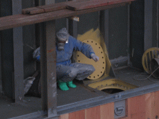 船台上における本船(Sno.575)一連作業 O の様子。(11/5〜6)